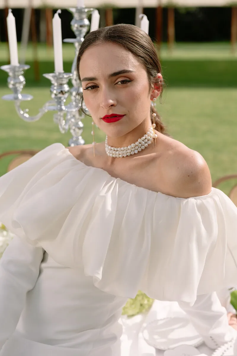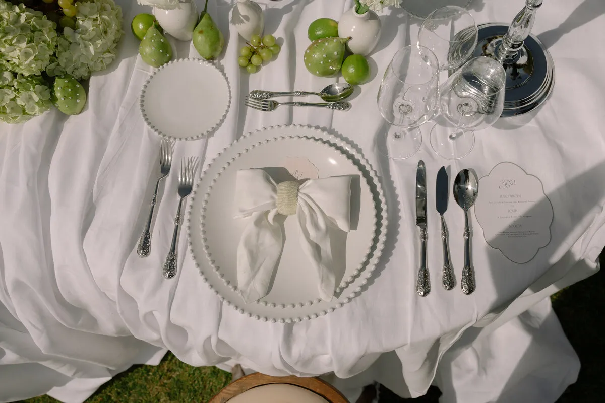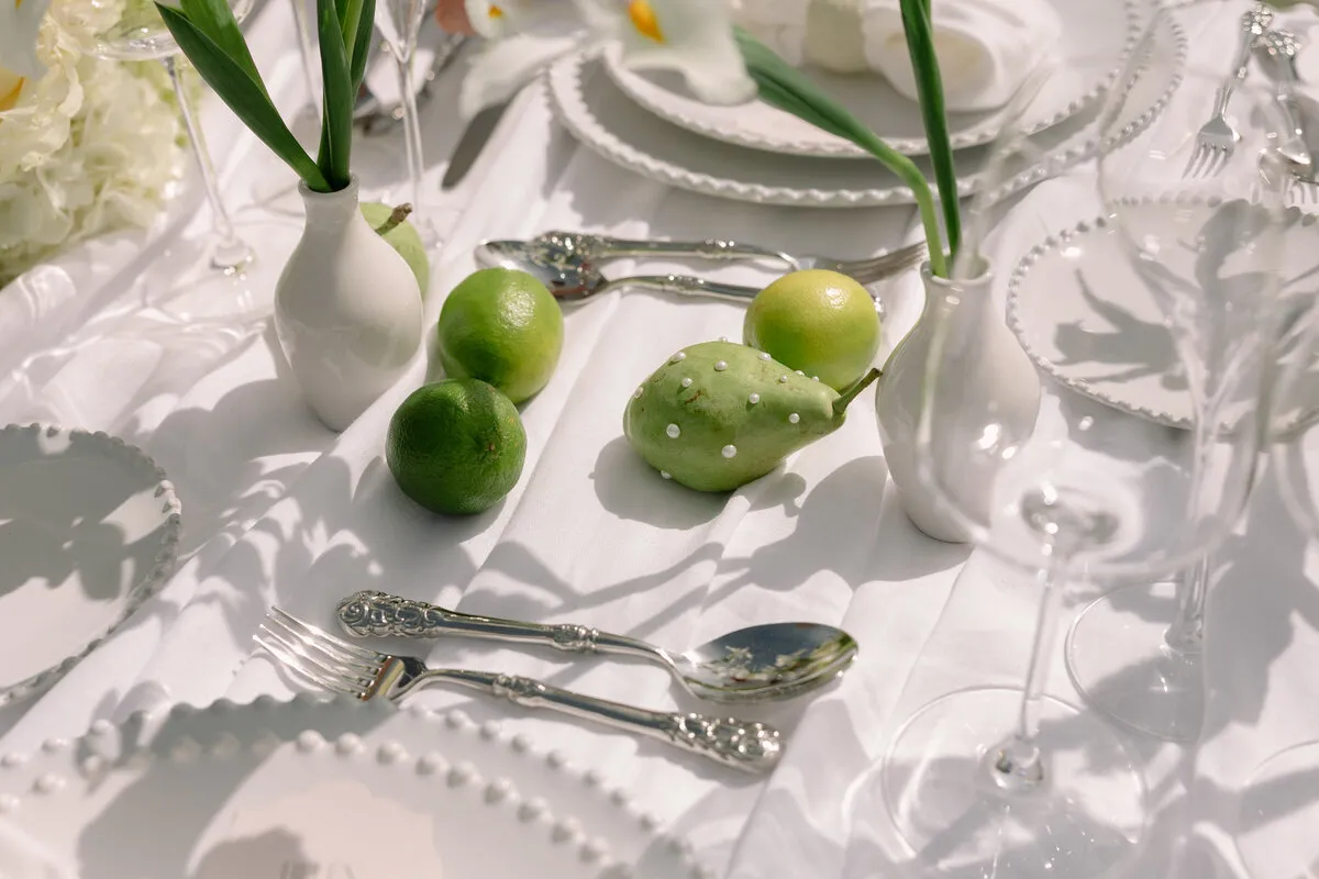 En «Pearl Garden» nos adentramos en un universo donde la elegancia se fundió con lo natural. Creamos una editorial de estilo luxury, minimalista y sofisticado, donde cada elemento hablaba por sí solo. Apostamos por una paleta de tonos verdes y neutros que evocaba serenidad y conexión con la naturaleza. Las flores, las frutas cuidadosamente dispuestas, las telas drapeadas, las texturas suaves, los lazos y los detalles perlados fueron los grandes protagonistas. Este proyecto nos permitió explorar tendencias que marcarán el año, desde una estética limpia hasta una delicadeza orgánica que invitaba a disfrutar de la belleza sin excesos.