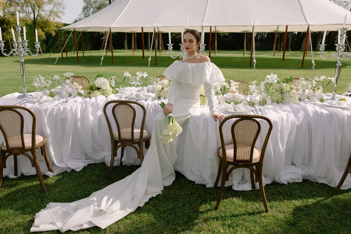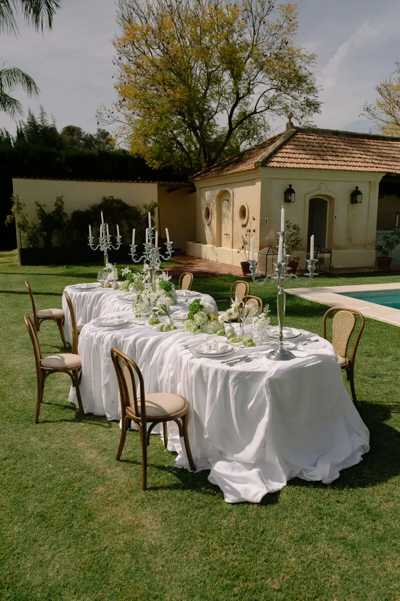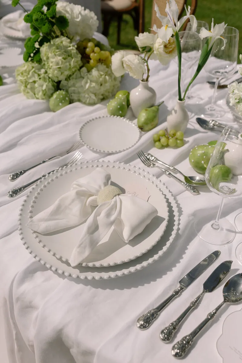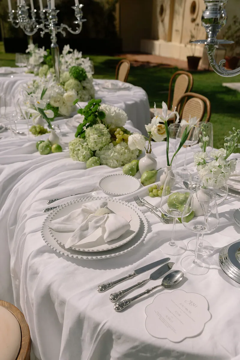 En «Pearl Garden» nos adentramos en un universo donde la elegancia se fundió con lo natural. Creamos una editorial de estilo luxury, minimalista y sofisticado, donde cada elemento hablaba por sí solo. Apostamos por una paleta de tonos verdes y neutros que evocaba serenidad y conexión con la naturaleza. Las flores, las frutas cuidadosamente dispuestas, las telas drapeadas, las texturas suaves, los lazos y los detalles perlados fueron los grandes protagonistas. Este proyecto nos permitió explorar tendencias que marcarán el año, desde una estética limpia hasta una delicadeza orgánica que invitaba a disfrutar de la belleza sin excesos.